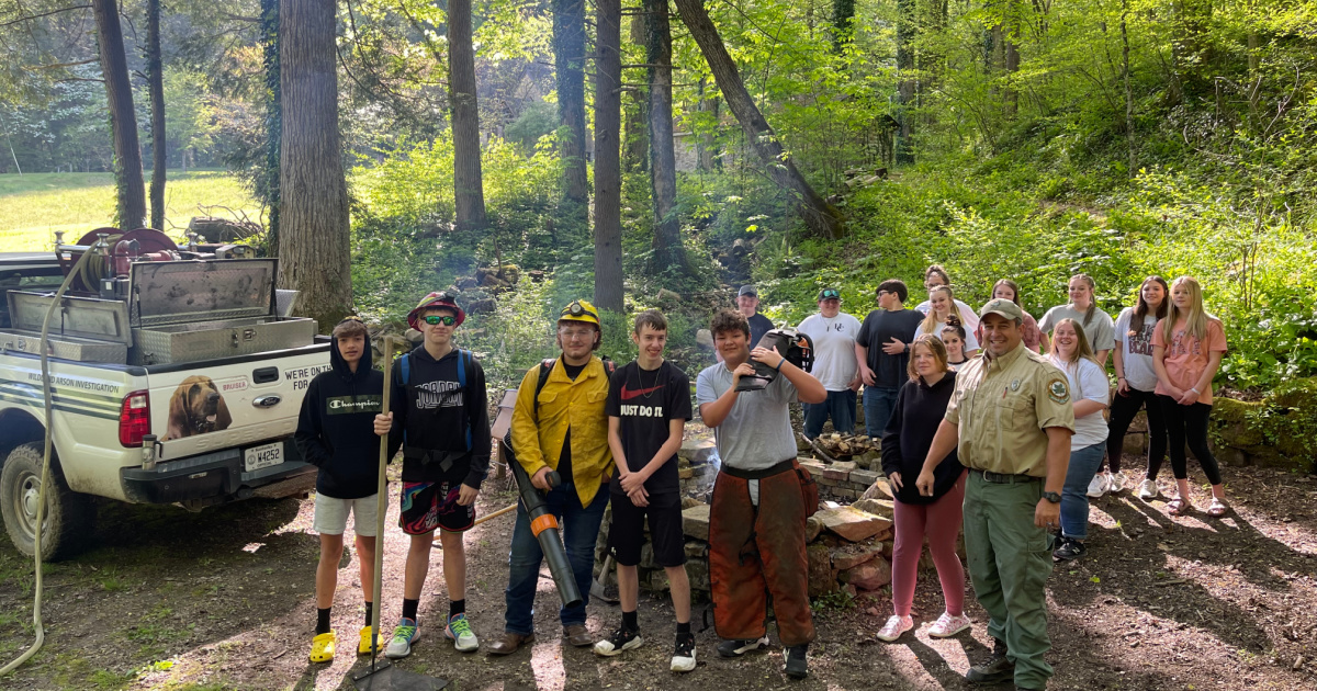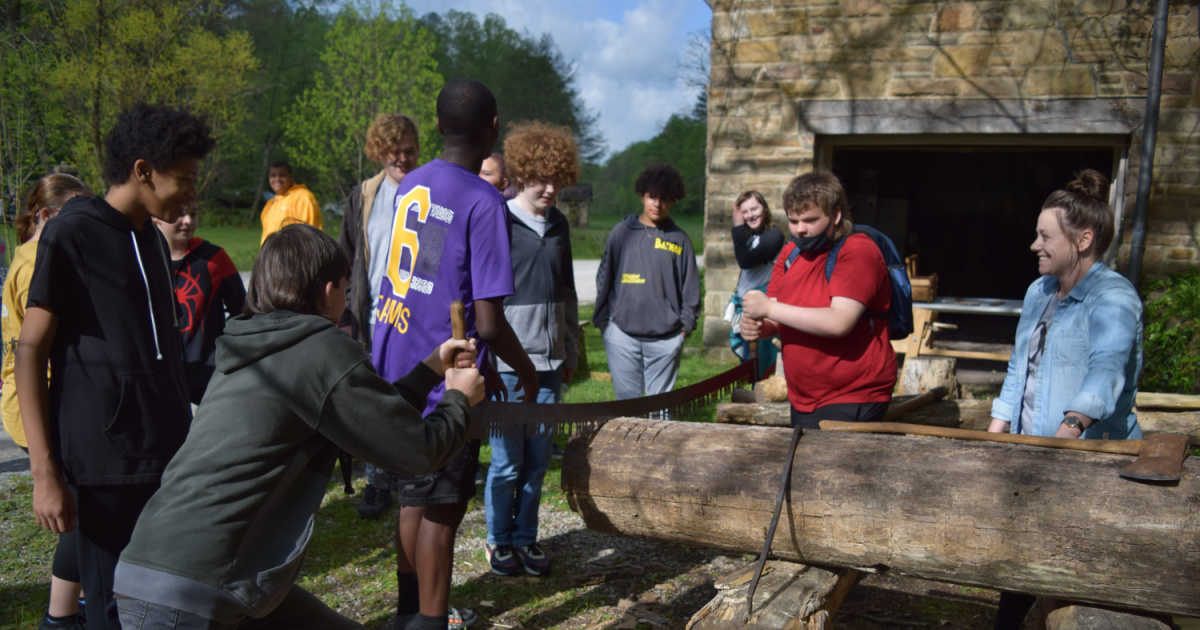 Harlan County Farm Bureau Forestry Days Field Trip was held at Pine Mountain Settlement School May 4 - 10. During the event, Harlan County Farm Bureau Board Members, Pine Mountain Settlement School Outdoor Education Staff, and Kentucky Division of Forestry staff educated 350 students about Forest Management. Students learned about forest management, wildfires, forest ecology, tree identification, forest and stream relationships, and how early settlers used timber to build log cabins. They learned that our forests provide clean air, filter water and provide a great environment for wildlife. The students learned a lot and enjoyed the outdoor field trip at Pine Mountain Settlement School.