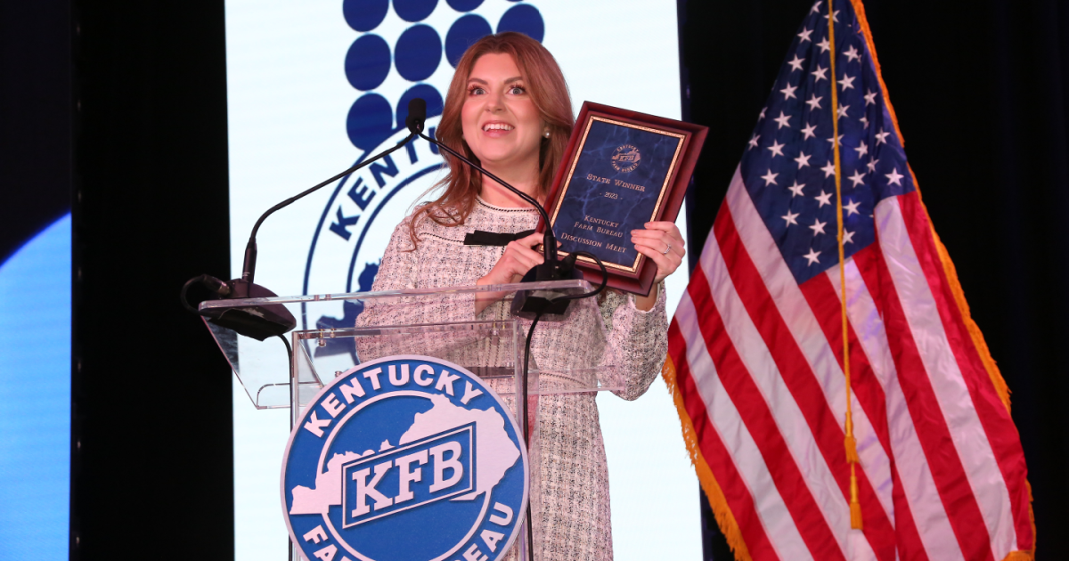 Alex Gilles of Daviess County won first place in the final round of Kentucky Farm Bureau’s (KFB) Discussion Meet, a debate-styled competition for young farmers that relies on an individual’s skill in reasoning and logical discussion of issues. The topic was: “What tools are currently available, and what new programs could be introduced to help young people access financial resources – and make sound decisions to run their farms and ranches?”