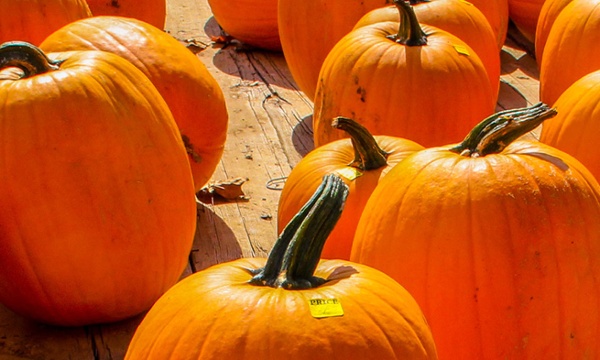 Pumpkins are round, orange fruits mostly known for fall decorations and pies. Used commonly roasted, pureed, or in soups and breads, pumpkins are ready for harvest in early fall.