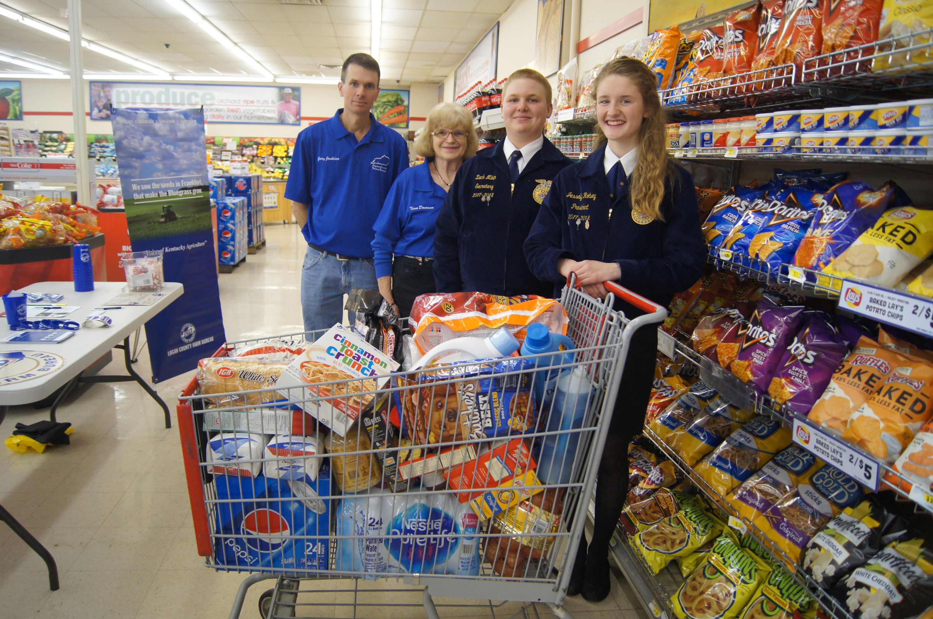 Farm Bureau members Russell Poore and Jerry Hughes worked at the Priceless IGA location. They were assisted by Logan County FFA officers Hanna Price 2018-19 secretary and Rachel Taylor 2018-19 vice president. Brandon McGhee won first place and Jo Ann Swears won second place.